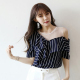 2017夏季韩版新款中短袖百搭小清新不规则漏肩宽松雪纺上衣女学院