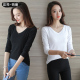 纯棉V领女士t恤2016秋季新品韩版宽松高品质黑白色上衣长袖打底衫