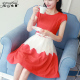 连衣裙女夏短袖A型时尚修身显瘦束腰圆领拼接撞色中长款夏季裙子