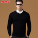 恒源祥男士秋冬装羊毛衫 100%纯羊毛纯色v领毛衣 麻花套头针织衫