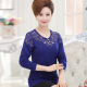 中老年女装春装新款长袖t桖中年女装弹力打底衫妈妈装印花V领上衣