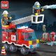 启蒙积木单桥消防车 儿童益智塑料拼插拼装玩具5-6岁以上男孩