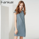 梵凯夏季韩版简约OL时尚收腰无袖立领牛仔女连衣裙