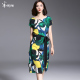米思阳扶华真丝印花连衣裙女2017夏装新品系带修身开叉包臀裙女装