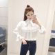 2017春装新款韩版纯色系带喇叭袖雪纺衫女宽松木耳边上衣打底衫潮