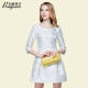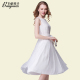 百依秀子夏装新款女装清新甜美时尚气质纯色绣花圆领连衣裙 B1349