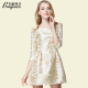 百依秀子秋装新款女装 名媛淑女绣花拼接时尚气质连衣裙 B1276