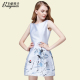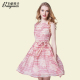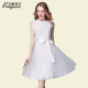 百依秀子夏装新款女装时尚小清新绚丽收腰无袖圆领连衣裙 B1393