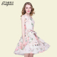 百依秀子春秋新款女装圆领无袖小清新碎花蝴蝶结淑女连衣裙B992