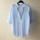 男朋友女士衬衫 女式休闲简约细条纹v领宽松长款衬衫裙5分袖夏秋