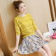 夏装新款时尚套装裙女七分袖蕾丝上衣a字短裙显瘦两件套连衣裙潮