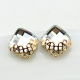简约复古镂空花边闪亮方块水晶耳钉女 菱形方型时尚气质耳饰