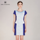 斯尔丽瑟俪正品 春夏新款水彩印花烫钻优雅通勤修身连衣裙