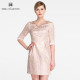斯尔丽瑟俪 新款女春夏季手工钉珠娃娃领蕾丝印花连衣裙