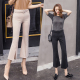 夏季新款韩版时尚开叉微喇叭裤女高腰九分裤显瘦宽松阔腿休闲裤子