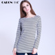春装女长袖打底衫弹力棉中长款圆领条纹T恤 斑马纹女士显瘦上衣潮