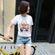 静茹家JR 春装新款 东大门卡通大象字母印花学生短袖T恤女