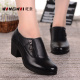旺奈秋季新款真皮女单鞋粗跟软底中老年妈妈鞋中年女鞋工作女皮鞋