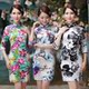 2017冬季新款复古礼服丝绸旗袍中袖低开衩短款日常改良唐装连衣裙