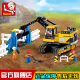 小鲁班拼装积木玩具工程系列履带式挖掘机男孩益智拼插5-6-7岁