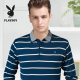 花花公子男士长袖T恤中年条纹商务休闲男装翻领春装薄款针织衫