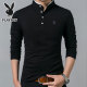 花花公子青年男士长袖T恤立领商务休闲韩版纯色全棉潮流打底衫秋