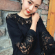 【特价清仓】春夏新款宽松韩版套头卫衣女蕾丝拼接长袖T恤衫短款