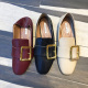 韩国代购女鞋2017年春秋新款复古金属扣方头平底小皮鞋穆勒懒人鞋