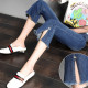韩版高腰显瘦微喇裤女春夏毛边九分裤修身弹力时尚开叉喇叭牛仔裤