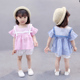 17年夏款 1-3岁女童娃娃领条纹套装短袖女宝宝荷叶袖儿童韩版童装