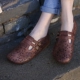 新品包邮2017夏真牛皮双皮带扣凉鞋软平底雕花镂空洞洞鞋女鞋子