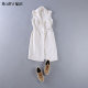 菩提猫欧洲站2017春装新款气质翻领纯色百搭抽绳长款马夹外套女潮