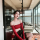王柳雯网红同款性感长袖一字肩温泉泳衣女士分体小胸钢托聚拢泳装
