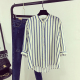 棉麻衬衫女长袖2017春夏新款韩版宽松百搭学生bf风竖条纹立领衬衣