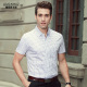 丝光纯棉短袖衬衫男夏季商务休闲格子衬衣中年爸爸装免烫白色打底