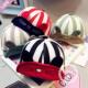 韩版春秋季儿童猫咪耳朵软檐帽男女宝宝条纹棒球帽翻檐帽鸭舌帽子