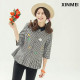 毛菇小象 2016夏装新款简约OLOL领五分袖卡通条纹衬衫女打底衫