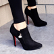 高跟鞋2016秋季新款深口单鞋尖头防水台绒面时尚性感裸靴细跟女鞋