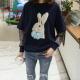 JUJU韩国代购 女士上衣蝴蝶结兔子蕾丝长短袖拼接假两件套头卫衣