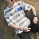 港仔春夏条纹五分袖t恤男短袖韩版潮学生百搭中袖男宽松薄款上衣