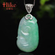 ILIKE珠宝 白18k金凤凰盘扣镶嵌钻石 A货糯种翡翠如意吊坠男女款
