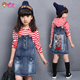 女童套装春装2017新款条纹T恤牛仔背带裙中大儿童春秋两件套裙装