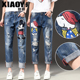 破洞牛仔裤女春夏季2017新款浅色翻边九分裤韩版宽松休闲哈伦裤潮