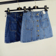 夏季新款韩版复古学院风口袋排扣高腰显瘦牛仔半身裙A字裙女