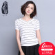 梵希蔓夏季新款短款打底衫条纹v领修身短袖套头薄款毛针织衫女