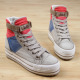 2016春季新款人本帆布鞋女松糕跟厚底粘扣高帮拼色内增高休闲女鞋