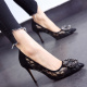 2017春季新款尖头鞋欧美性感网纱细跟高跟鞋水钻奢华方扣单鞋女OL