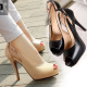 鱼嘴凉鞋女夏2017新款一字扣带厚底女鞋百搭防水台裸色高跟鞋细跟