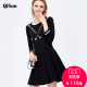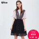 绮娑胖mm夏装收腰透视蕾丝拼接a字裙黑色短袖连衣裙大码中长款S