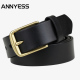 ANNYESS男士真皮皮带黄铜扣头 男腰带头层纯牛皮青年百搭裤带潮